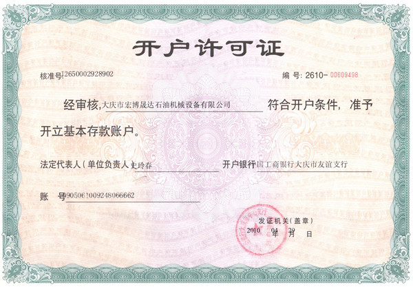 Account opening permit